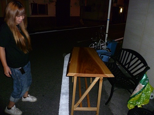 以前工事の際看板の材料が余った為、密かに?開店記念としてテーブル